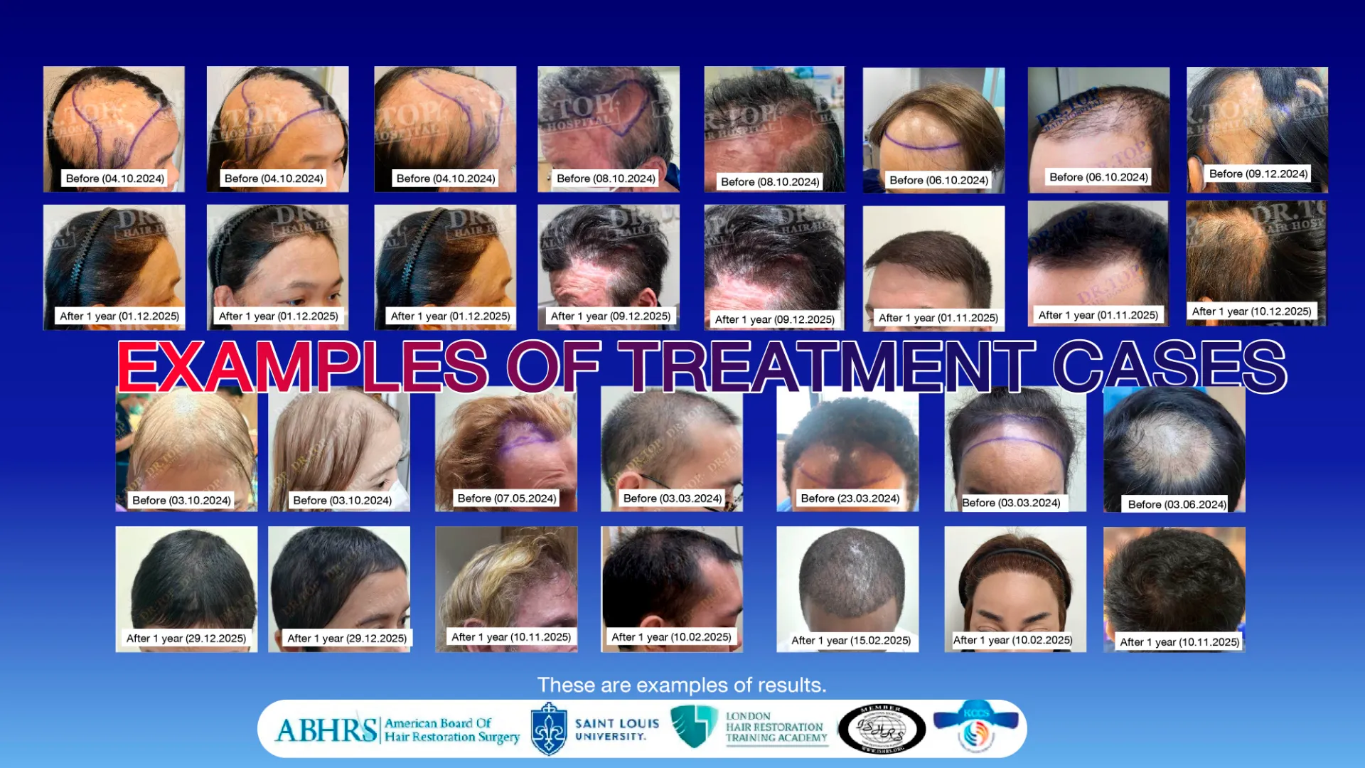 A : Cảm nhận kết quả thực tế từ hơn 10,000 ca điều trị! Chúng tôi có đánh giá bằng cả hình ảnh và video từ bệnh nhân thực tế, kèm ảnh so sánh trước-sau với kết quả rõ ràng, không chỉnh sửa bất kỳ điều gì. Vì chúng tôi coi trọng trải nghiệm thực tế hơn việc thuê Influencer quảng cáo. Với chuyên môn được công nhận, The Skin Clinic được tin tưởng bởi các bác sĩ trên toàn thế giới, từ Ý, Anh, Úc, Myanmar và nhiều quốc gia khác, để Dr.Top Hair Hospital by The Skin Clinic chăm sóc và điều trị.